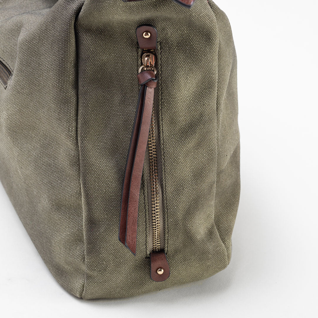 Disponibile in beige o verdone. Scomparti interni con porta cellulare e tasche organizer.