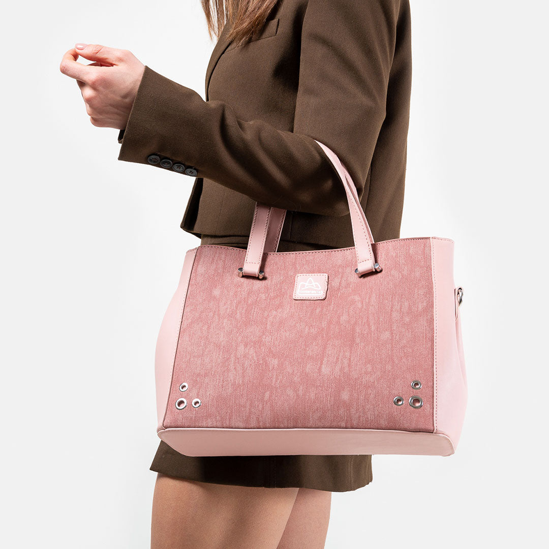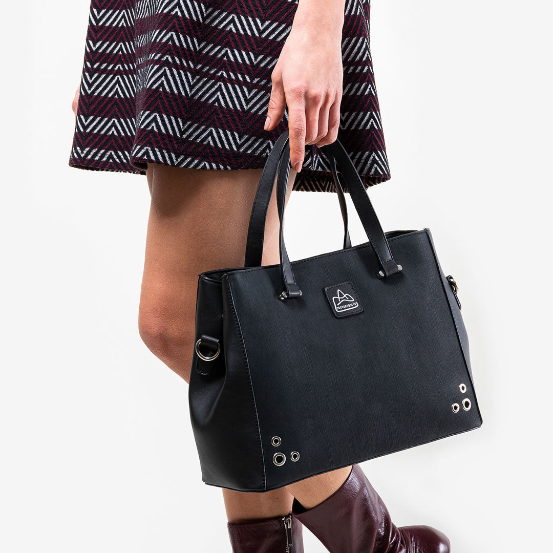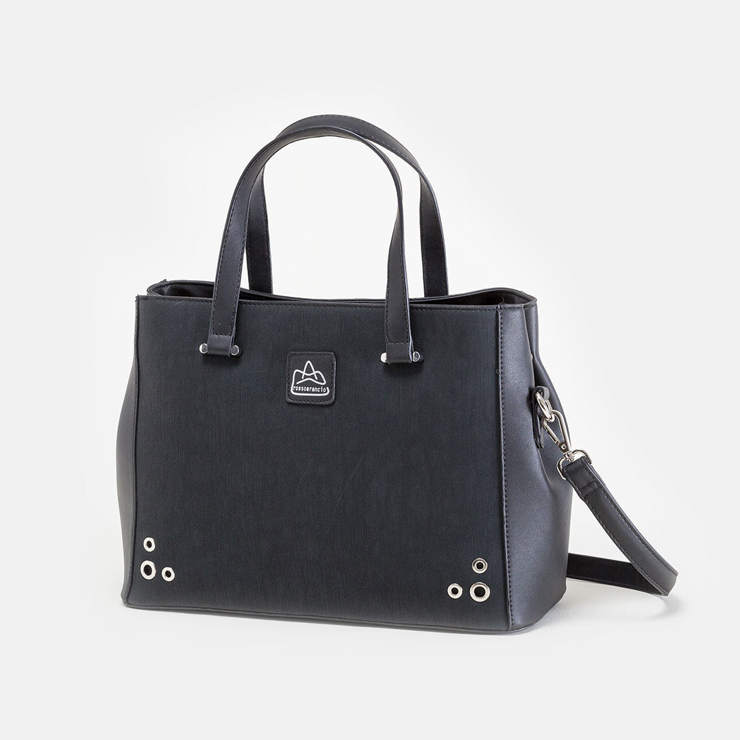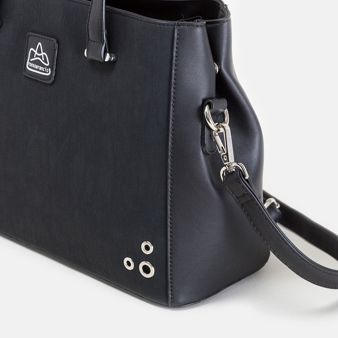 Shopping in ecopelle classico misto ad ecopelle stampato come un tessuto. Occhielli e logo frontali per un tocco di luce. Questa shopping classica si adatta ad una donna di gusti più tradizionali, che ama il design classico, uno stile signorile ed una maggiore capienza. E’ dotata di scomparti interni e tasche di varie dimensioni. Taschino esterno posteriore. Disponibile in nero e rosa antico, colore che si adatta altresì alla stagione estiva. Scomparti interni con porta cellulare e tasche organizer. Moschettoni e tiralampo con logo.